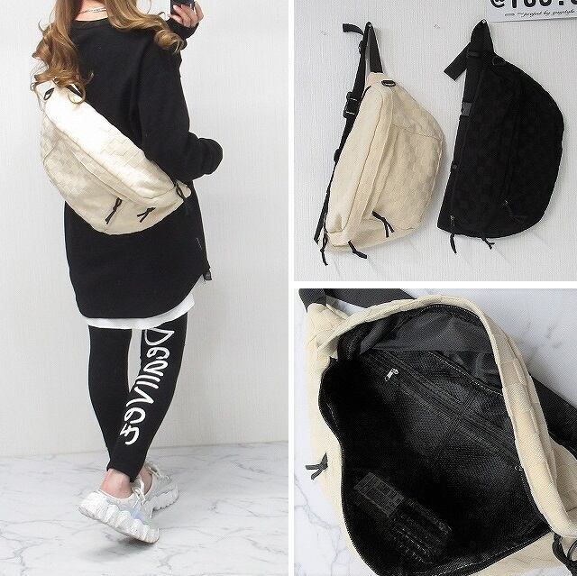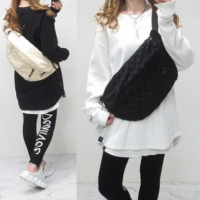 BAG チェッカー エンボス 大きめ収納抜群!ボディバッグ ウエストポーチ ヒップバッグ Bag